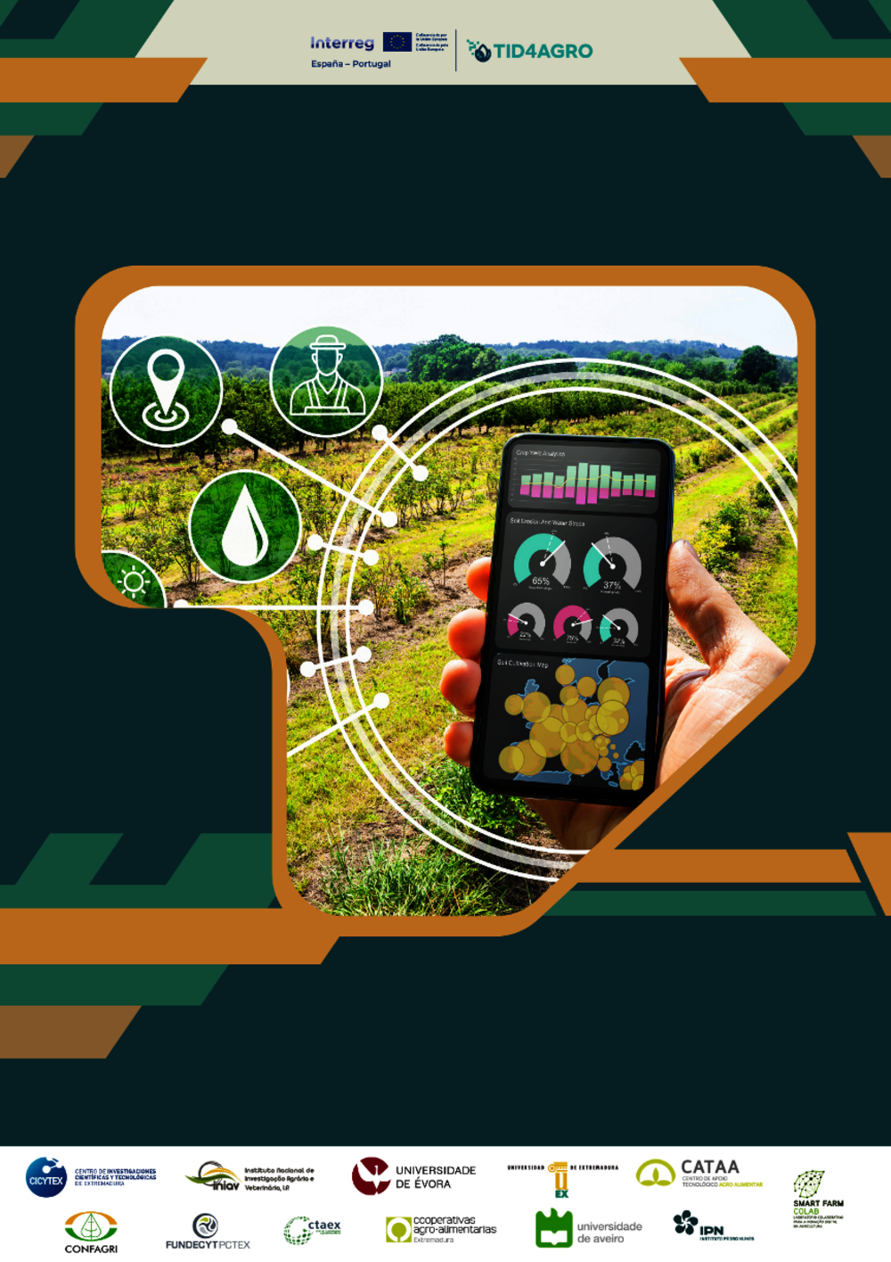 El consorcio que trabaja en TID4AGRO está integrado por doce socios, cinco entidades españolas y siete portuguesas. Cuenta con tres universidades (Extremadura, Évora y Aveiro); dos centros públicos de investigación agraria (CICYTEX e Instituto Nacional de Investigação Agrária e Veterinária); centros tecnológicos privados (Associação Centro de Apoio Tecnológico Agroalimentar de Castelo Branco y CTAEX); entidades expertas en innovación y emprendimiento (FUNDECYT-PCTEX e Instituto Pedro Nunes); una asociación público - privada (SMART FARM COLAB) y dos federaciones de cooperativas agroalimentarias (Confederação Nacional das Cooperativas Agrícolas e do Crédito Agrícola de Portugal y Cooperativas Agroalimentarias de Extremadura).